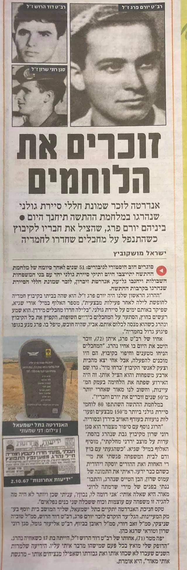 בתוכנית זו מרואיין אלוף במיל' וראש אמ"ן לשעבר אורי שגיא בנושא אנדרטת מלחמת ששת הימים ולימים מלחמת יום הכיפורים, ופסל המייצג אנדרטה זו.